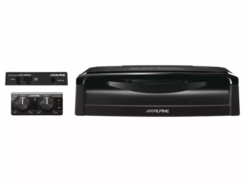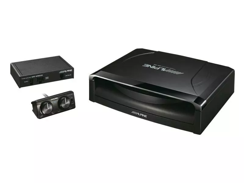 Der SWE-1200 von Alpine ist ein Subwoofer in Boxform, der dank seiner kompakten Bauweise platzsparend und verdeckt installiert werden kann, beispielsweise unter einem der Vordersitze im Inneren des Fahrzeugs. Er hat die Masse 280 x 75 x 226 Millimeter und wird zusammen mit einem Verstärker sowie einer Kabelfernbedienung geliefert. Der Verstärker hat die Abmessungen 140 x 30 x 85 Millimeter.