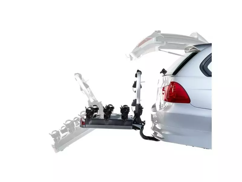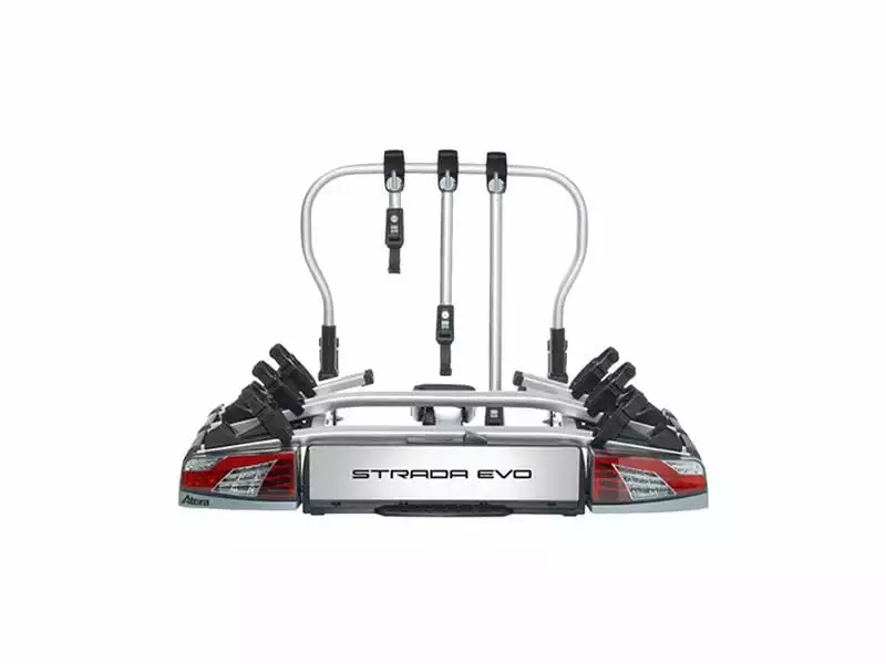 Grossflächige Rückleuchten in moderner Klarglas-Ptik. Seitlicher Unterfahrschutz mit Doppelfunktion: Sicherheit und Fortsetzung der dynamischen Linie des Fahrzeuges. Abklappbarer Aluminium-Bügel mit abnehmbaren Abstandhaltern. Auch der leichtgängige Rollenauszug setzt einen neuen Masstab in Sachen Komfort und Bedienbarkeit selbst in beladenem Zustand. Mit dem Evo 3 kann auch bei grossen Vans die Heckklappe problemlos geöffnet werden.