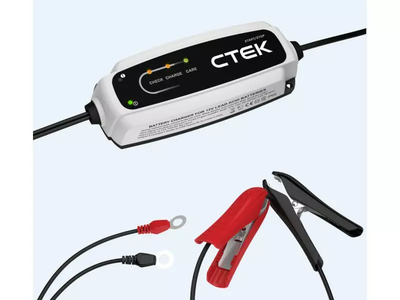 Der Anschluss des Ladegerätes kann wahlweise über Polklemmen an der Batterie oder einen fest im Motorraum installierten «Comfort Connect»-Verbinder erfolgen. Danach müssen Sie das CT5 Start Stop nur in eine Netzsteckdose einstecken. Den Rest erledigt die Elektronik selbsttätig. Zudem ist das Ladegerät rückspannungsgesichert, kurzschlussfest und sprüht beim Anschliessen keine Funken.