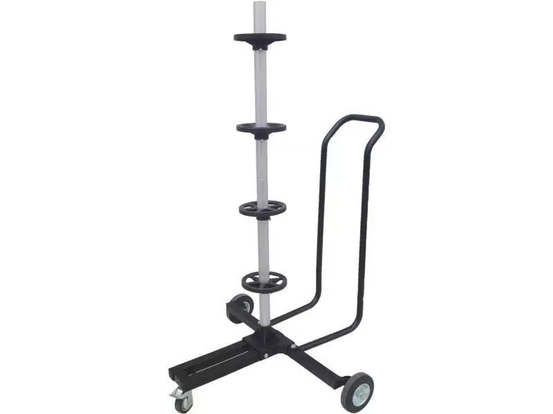 Um Ihre Reifen platzsparend zu lagern und darüber hinaus noch einer Verformung bei Druckverlust vorzubeugen, ist dieser XL Reifenwagen mit Feststellbremse ideal. Er erleichtert Ihnen den Transport der schweren Reifen beim Räderwechsel und verfügt über eine robuste Schutzhülle aus abwaschbarem Nylon mit Klettverschluss. Felgenschonende Auflageflächen verhindern Kratzer und Beschädigungen, zudem sind ein stabiler Handgriff und Räder mit Feststellbremse integriert. Die Vorrichtung lässt sich einfach zusammenbauen, ist passend für alle gängigen Pkw und trägt Reifenbreite von bis zu 285 mm.