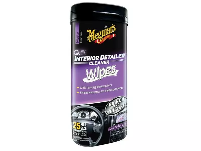 Die Quick Interior Detailer Reinigungstücher von Meguiar’s kombinieren eine starke Reinigung mit einem hohen UV-Schutz, um die Oberfläche schnell und gründlich zu säubern und vor dem Verblassen durch Sonneneinstrahlung zu schützen. Nach der Anwendung hinterlassen die Tücher zudem einen angenehmen Duft. Sie können mit Ausnahme von Textilien auf sämtlichen Oberflächen im Fahrzeuginnenraum inklusive eingebauten Displays verwendet werden und stellen dabei nahezu den Ursprungszustand der Oberfläche wieder her. Im Lieferumfang sind 25 Tücher enthalten.
