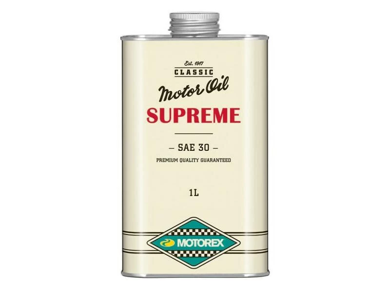 Motorex Supreme SAE 30 ist ein mild legiertes Einbereichs-Motorenoel auf Mineralölbasis. Die authentische Formulierung bietet einen optimalen Verschleiss- und Oxidationsschutz. Ohne Dispergentiensadditive, damit sich anfallender Schmutz und Abrieb in einer Vertiefung der Ölwanne, mit Hilfe eines Magnetes oder in einem Grobfilter, absetzen kann.