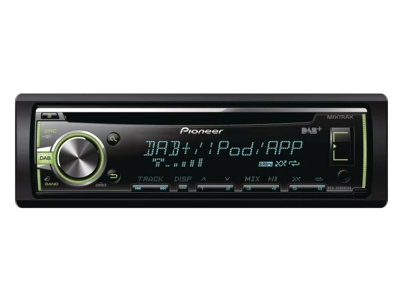 Das Pioneer DEH-X6800DAB-AN, ein 1-DIN DAB+ Autoradio mit DAB+ Antenne, stellt einen CD-Tuner mit USB, AUX-Eingang und integriertem DAB+ Tuner dar. Das Gerät unterstützt die Direktsteuerung von iPhone und iPod. Mixtrax ermöglicht dynamische Beleuchtungseffekte und DJ-Übergänge, während Sie die Farben Ihrer Display- und Tastenbeleuchtung separat regeln können. Auf Wunsch speichert Time Shift mehrere Minuten des DAB+ Radiostreams.