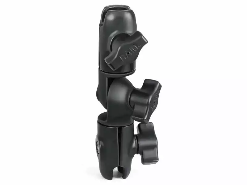 Das Halterungssystem vom «RAM Mount» ist modular aufgebaut. Jede Halterung besteht aus einer Basis (Base), einem Arm und einem Kopfteil (Top). Je nach Halterung werden diese miteinander verschraubt, meist aber über ein Kugelgelenk zusammengesteckt. Dies bietet Flexibilität in der Ausrichtung, sorgt aber zusammen mit dem Material für einen schock- und vibrationsdämpfenden Effekt.
