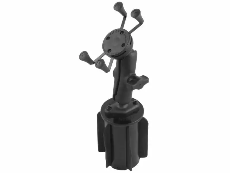 Die Universalhalterung von «RAM Mount» besteht aus einer Getränkehalter-Basis, einem Verbindungsarm und der X-Grip Universal-Halterung als Kopfteil. Sie wird im Getränkehalter verankert und hält Geräte mit einer Höhe von max. 2,2 cm sowie einer Länge und Breite von 4,76 bis 8,25 cm. Die Gummibeschichtung der Halterung verhindert das verrutschen des Gerätes auch bei starken Vibrationen.