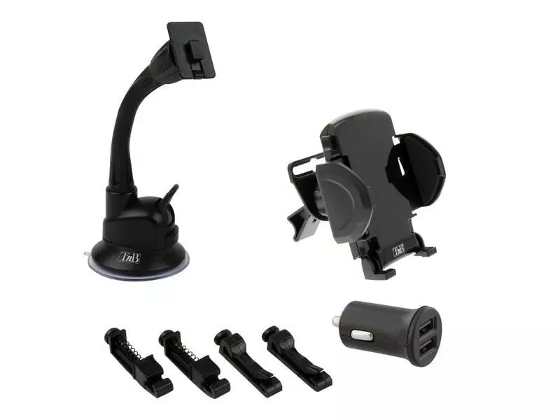 - 2 Halterungen: 1 Halter für die Windschutzscheibe und 1 Halter für die Belüftungsdüse.