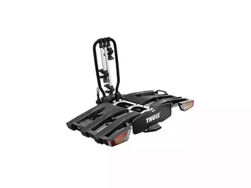 Einfache Befestigung der Fahrräder durch abnehmbare Fahrradhaltearme mit abschliessbaren Thule AcuTight Drehzementbegrenzer-Knöpfen, die klicken, wenn das optimale Drehmoment erreicht ist. Grosser Abstand zwischen den Felgenhaltern sorgt für einen «reibungslosen» Fahrradtransport. Extra lange Felgenhaltebänder mit Ratschenfunktion gestatten die einfache Befestigung von Rädern (Radbreite bis 4.7 Zoll), wodurch der Transport von Fatbikes ermöglicht wird. Praktischer Abklappmechanismus mit Fusspedal ermöglicht einfachen Zugang zum Kofferraum, selbst mit Fahrrädern auf dem Träger