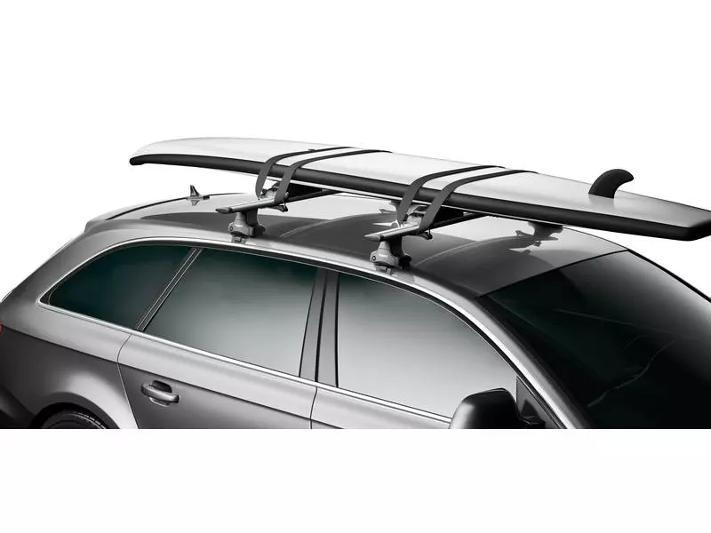 Vielseitiger Surfboard- und SUP-Träger, der sich ideal für den Transport von ein oder zwei Boards auf einem beliebigen Dachträger eignet.